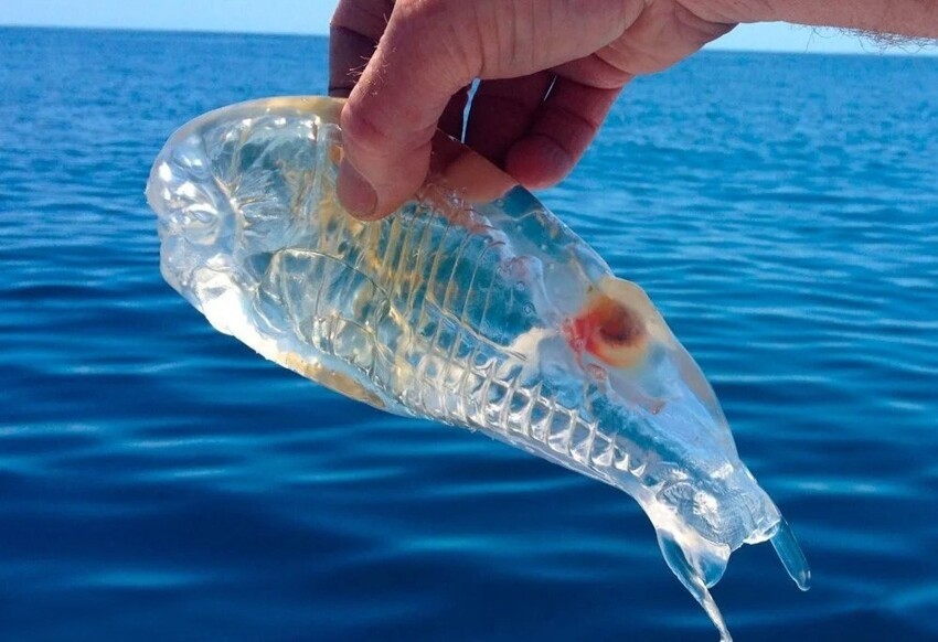 Не рыба, не медуза, не моллюск и даже не червь — что ты такое, кусок холодца, гонимый течением? Прозрачное тело, похожее и не похожее на рыбу одновременно, без чешуи, мозга, с какой-то оранжевой пельмениной внутри… Такова сальпа, животина столь же интересная, сколь и странная на первый взгляд.