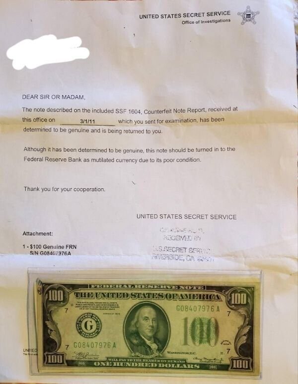 3. „У меня есть хрустящая 100-долларовая банкнота 1934 года вместе с письмом от Секретной службы с просьбой уничтожить ее“