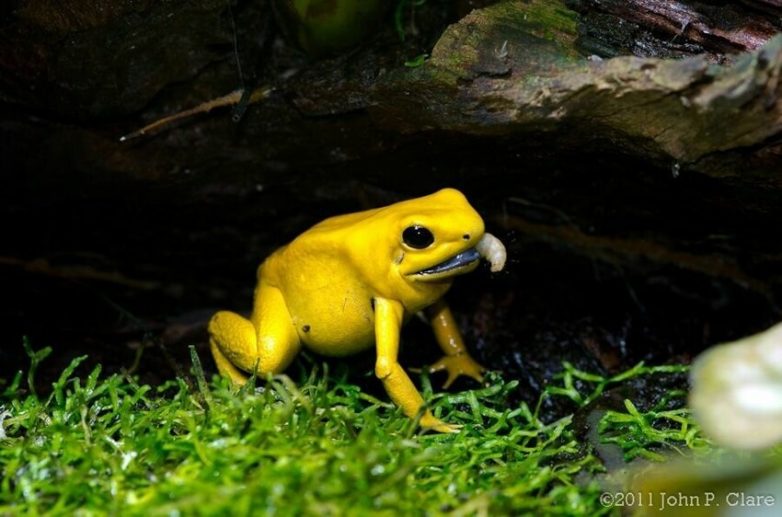 Колумбийцы не просто так назвали эту лягуху ужасной. Она ужасно несправедлива по отношению к другим животным! В теории, ярко-жёлтый (или красный) цвет кожи должен отпугивать всех окружающих. Только вот поди найди это 4 сантиметровое чудище в густых и пёстрых джунглях.