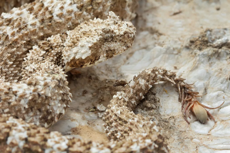 Более того, животное устраивает целую экспозицию: её повышенной шершавости тело изображает камень, а кончик хвоста — бегающее по ней паукообразное. Насекомоядные птицы слетаются на змеиный перфоманс и пытаются укусить гадюку за хвост. Ну а дальше всё просто: рывок, укус, и ядовитый сюрприз, что стремительно распространяется по жилам птахи.
