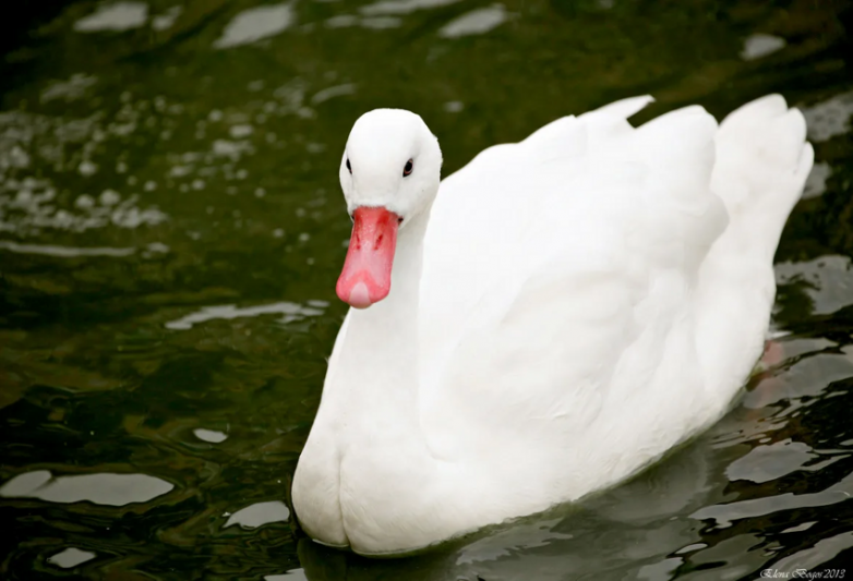 Единственное, что выдаёт в псевдо-лебедях утку — чёрные кончики крыльев. Но их поди — разгляди! Ну и размерами до лебедей утка-косплеер не дотягивает: 4 среднестатистических кило коскоробы не идут ни в какое сравнение против 12 лебединых.