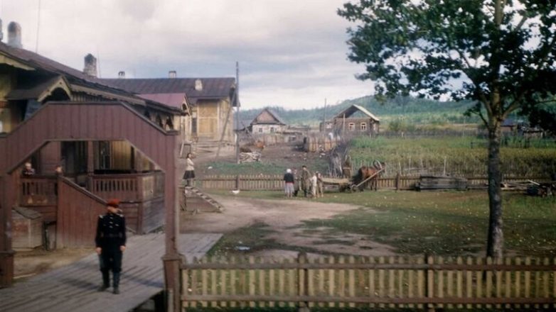 Советское село у железной дороги, тайно снятое из окна поезда американским шпионом Мартином Майнхоффом, 1952 г.