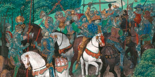Карл со свитой сходят с ума в лесу под Ле‑Маном. Иллюстрация неизвестного художника XV века