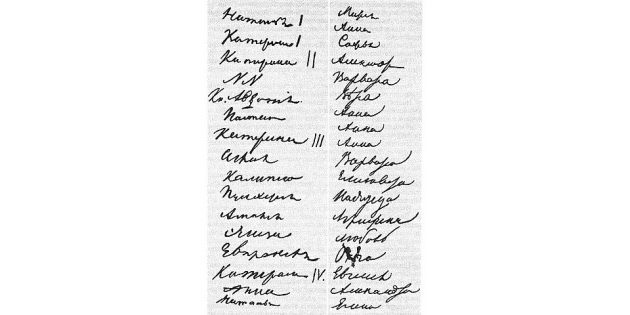 Фрагмент «донжуанского списка» А. С. Пушкина из альбома Елизаветы Николаевны Ушаковой, 1829 год