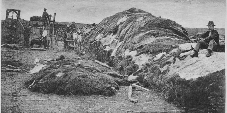 Шкурозаготовительный двор Rath & Wright's демонстрирует 40 000 шкур бизонов. 1878 год. Додж-Сити, Канзас