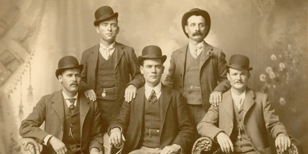 Крайние в нижнем ряду — знаменитые Сандэнс Кид и Бутч Кэссиди. 1900 год