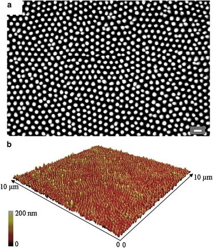 Наноконусы заставляют бактерии «растягиваться» настолько, что они погибают. Как сообщается, такую нанотекстуру можно наносить искусственным способом, но она не выдерживает первого же мытья