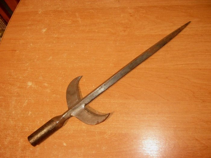 Наконечник также отличается разной длиной — в среднем от 15 до 40 сантиметров. Кроме того, можно встретить и образцы с лезвием почти в полметра. Такие модификации имеют большое сходство с нагинатой, однако отличалось от последнего наличием круглого, а не овального сечения древка. Встречаются и наоборот, очень маленькие наконечники — наиболее короткий, сведения о котором сохранила история, имел лишь восемь сантиметров в длину.