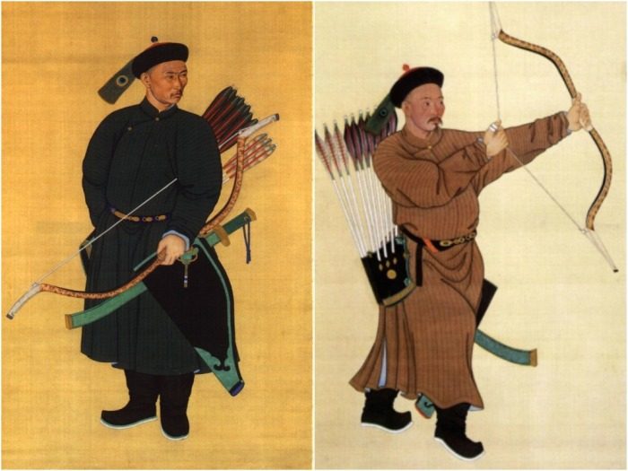 Эфес оружия, который выступает вперед и вверх, при обычном способе ношения (неважно вниз или вверх лезвием) является помехой для быстрого извлечения лука. А именно это оружие было у воинов в приоритете, тогда как меч являлся дополнительным. То есть им в основном пользовались, когда стрел уже не было, или приходилось сражаться в ближнем бою.