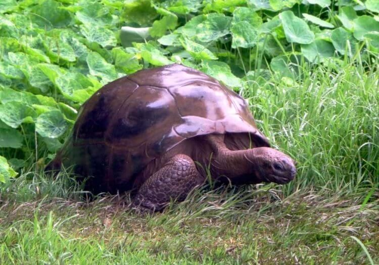 Гигантские черепахи — удивительные создания, родиной которых является остров Альдабра в Индийском океане. Длина их тела достигает 120 сантиметров, а масса составляет до 300 килограммов. В неволе эти создания живут около 150 лет, но есть особи, которые живут еще дольше.Самой известной гигантской черепахой является Адвайта — она родилась примерно в 1800-е годы и умерла в 2006 году. На момент смерти ей было около 256 лет, поэтому она считалась самым старым животным в мире.