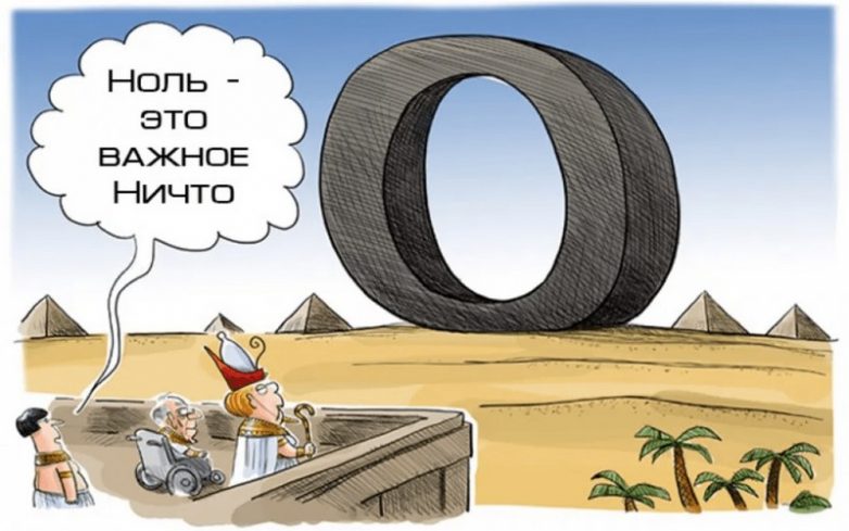 Ноль – это число, которое при сложении или вычитании из него не меняет последнее. Впервые его начали использовать вавилонские математики. Это было ориентировочно в 300-м году до н. э. Тогда он выглядел немного иначе: как две скобки и обозначал пустоту. Первая запись о ноле как о числе датирована 876 годом.