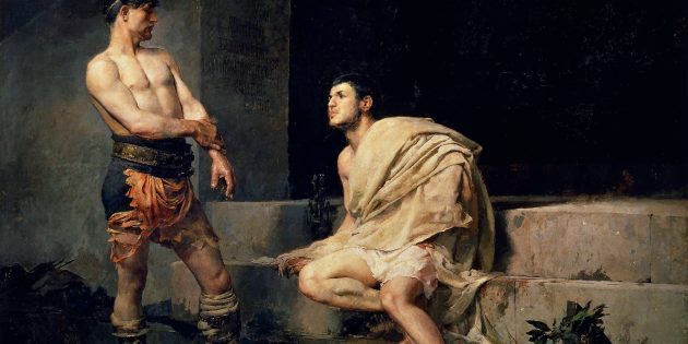 Этруски верили, что отход в лучший мир какого‑нибудь вождя или военачальника надо обязательно сопроводить сражением, иначе покойнику скучно будет. Римляне идею оценили и на похоронах своих аристократов стали заставлять биться рабов, а иногда — и свободных добровольцев, которым не хватало адреналина.