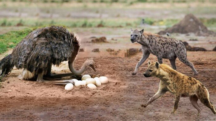 Тем не менее, стычки между этими двумя африканскими обитателями наблюдаются. Гиены очень любят яйца страусов и птенцов, которые только появились на свет. Главное, чтобы рядом не оказались родители этих птенцов.