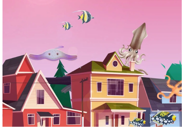 Между домами проплывают крупные и мелкие рыбы. Осьминоги прорезают щупальцами облака. Огромный кит медленно движется к горизонту. Над крышей ближайшего дома две акулы охотятся на четырех морских львов. Вам машет сосед. Он выставил в окно удочку и ждет, когда рыба клюнет. Стая дельфинов пролетает мимо окна. Они радостно свистят, будто приветствуя вас. Что происходит?