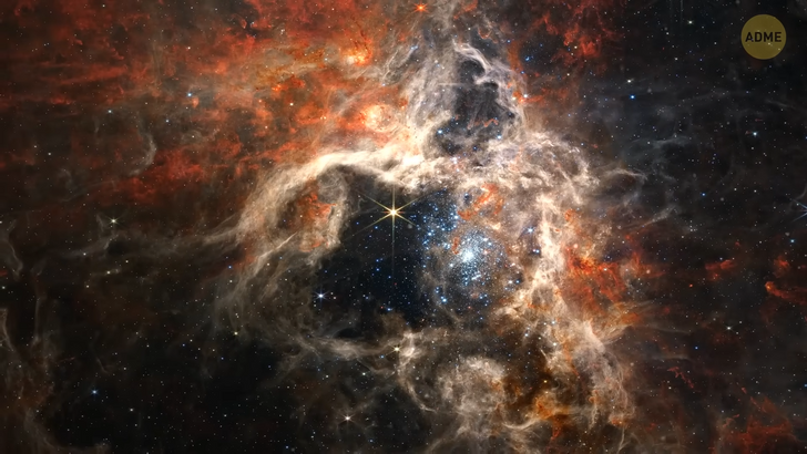 Туманность — это массивное облако газа и пыли. Некоторые туманности образуются, когда звезда приближается к концу своего цикла и выбрасывает большое количество газа и пыли. Другие появляются в местах формирования новых звезд. Самая большая известная нам туманность — это туманность Тарантул. Ее диаметр — около тысячи восьмисот световых лет. Ее еще называют «Тридцатое Золотой Рыбы». Она находится от нас в ста семидесяти тысячах световых годах. В отличие от своего тезки, Тарантул неопасен. Совсем наоборот — это звездная детская! В этом месте рождается много молодых звезд. А еще это самая активная область звездообразования во всем нашем галактическом окружении!