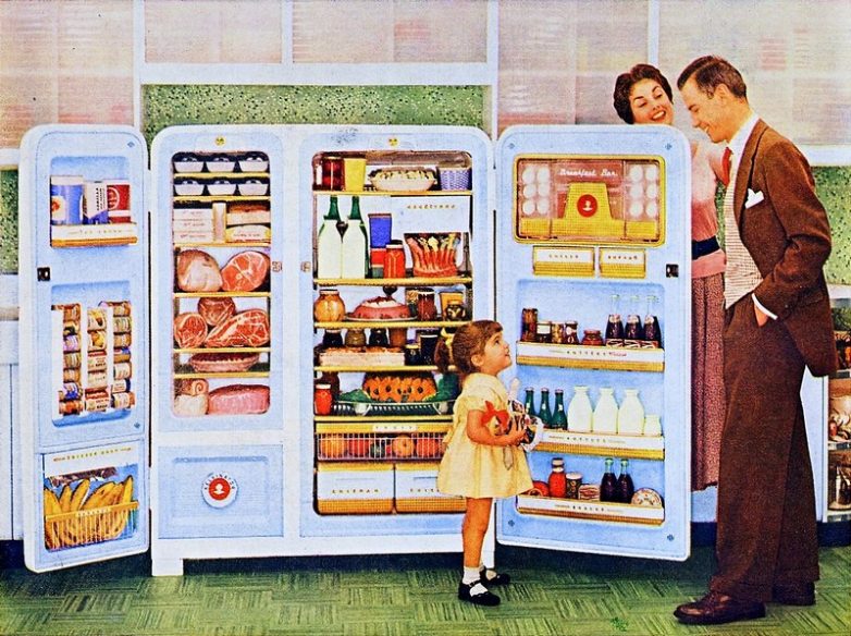 Этот холодильник, выпускавшийся в 1950-х годах — потрясающий винтажный прибор и один из первых когда-либо произведенных холодильников side-by-side. Когда-то его называли «Роллс-Ройсом» среди бытовой техники.