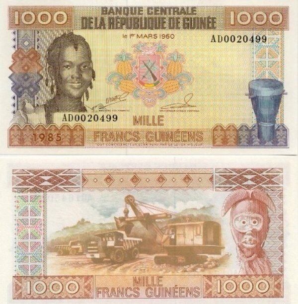 БЕЛаз на купюре в 1000 гвинейских франков