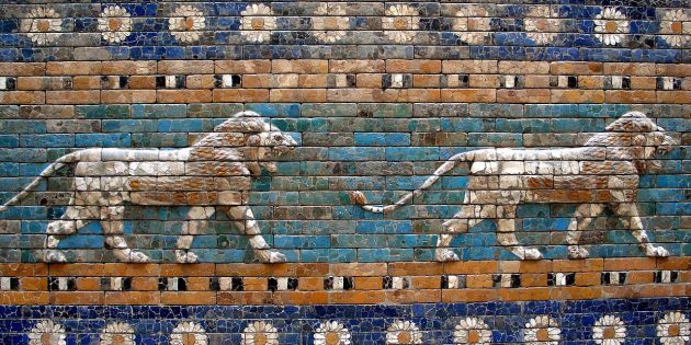 Львы и цветы на воротах Иштар из Вавилона в берлинском музее Пергамон
