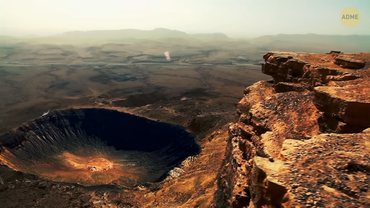 Но некоторые метеориты преодолевают верхние слои атмосферы и падают на землю, оставляя после себя следы от удара, которые выглядят как круглые ямы. Кратер Бэрринджера, расположенный на плато Колорадо в Северной Аризоне, представляет собой впадину в форме чаши, которая также называется метеоритным кратером. Он относительно молод, так как сформировался всего пятьдесят тысяч лет назад. Его оставил огромный железный метеорит, который ударился о Землю с невероятной скоростью — около сорока тысяч километров в час. Он взорвался с такой силой, что переместил сто семьдесят пять миллионов тонн породы.