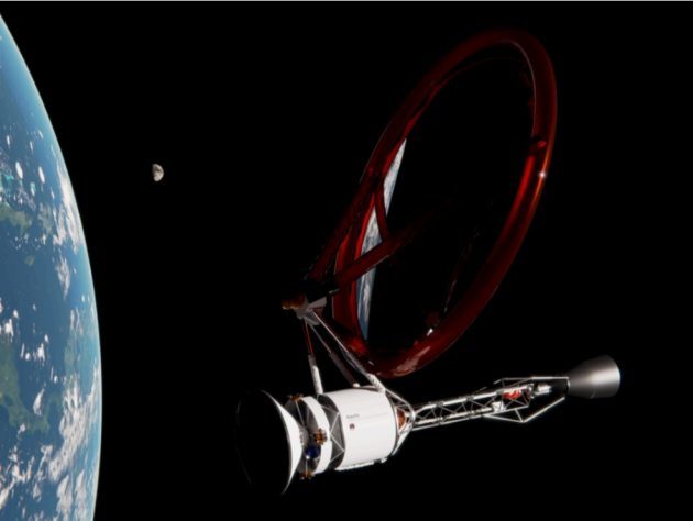 Концептуальный рендер лазерно-тепловой двигательной установки, с полезной нагрузкой 1 т для 45-дневного полёта на Марс