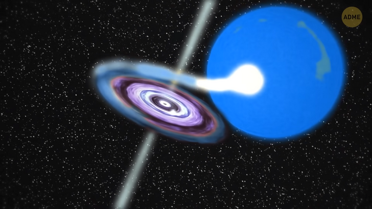 Теперь рассмотрим черные дыры, которые мы знаем и видели. Первые из них называются звездными черными дырами. Обычно их масса составляет десятки солнечных масс. Это не кажется много, пока вы не вспомните, что масса Солнца — нониллионы килограммов. Даже не пытайтесь представить себе это число: в нем тридцать нулей! Самая маленькая из известных нам черных дыр от двух до четырех раз тяжелее Солнца. Это одинокая дыра, которая бродит по космосу в поисках добычи. Ближайшая к нам черная дыра называется Гайя би эйч один. Она весит примерно в десять раз больше Солнца, и ее размеры исчисляются километрами. А самая дальняя называется M33X7. Она находится в трех миллионах световых лет от нас и прямо сейчас поедает голубого гиганта, который в несколько раз больше Солнца!