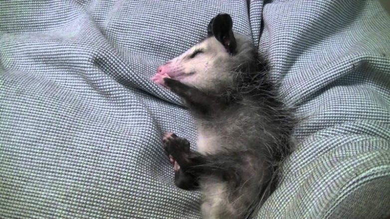Ещё одни животные, которые опровергают мифы о собственном сне — это опоссумы. Да, у них очень сильный хвост, да, они могут висеть на нём вниз головой на ветке дерева, но они не спят в такой позе. Вообще опоссумы ночные животные, днём они отдыхают, спят, а как стемнеет, отправляются за добычей. Спят опоссумы много, иногда до 18-20 часов в сутки. Для этого они располагаются на ветке дерева, или свернувшись клубочком в дупле и другом укрытии.