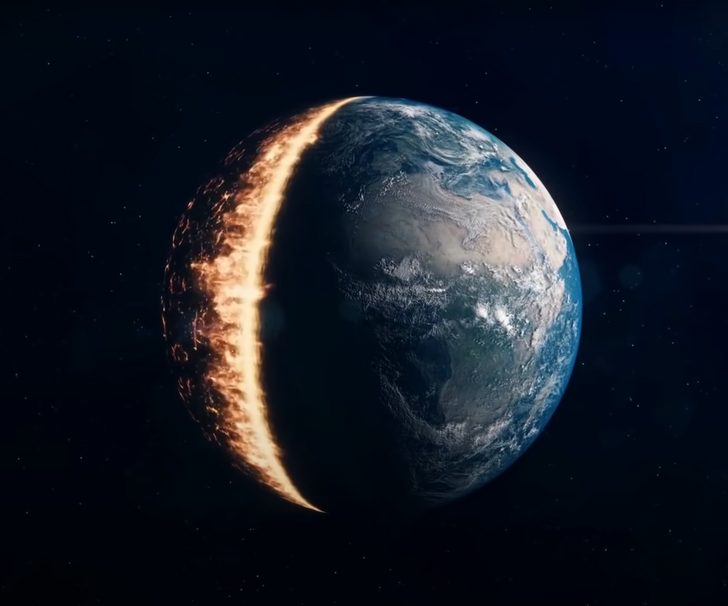 Возможно, вы удивитесь, но это происходит прямо сейчас. И началось очень давно. Это даже влияет на длительность нашего дня. В конце концов Луна полностью исчезнет, что сильно повлияет на океаны нашей планеты. Чтобы понять, что произойдет, давайте вернемся назад и взглянем на всё это в перспективе. Луна вращается вокруг нас уже четыре с половиной миллиарда лет. Есть несколько теорий о возникновении Луны. По одной из них она появилась, когда в молодую Землю врезался крупный объект. В ранней Солнечной системе царил хаос. В ней возникло несколько небесных тел, которые не превратились в полноценные планеты. Одно из этих тел, размером с Марс, врезалось в Землю, выбросив в космос огромные куски коры нашей планеты, а гравитация связала отдельные элементы вместе. Это объясняет, почему Луна состоит из более легких частиц, чем мы находим здесь, на Земле.