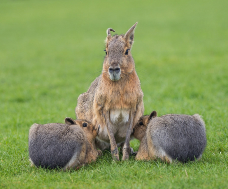 Начнём с того, что патагонский заяц это не заяц. По систематике его ближайшие родичи — морские свинки. А по факту, он выглядит как… кто? Тело микро-оленя. Уши и лапы кролика. Общий вид чупокабры. Не зверь, а сборная солянка из несуразности. Причём довольно крупная — мара занимает 4 место в списке самых больших грызунов планеты. Она весит до 16 кило.