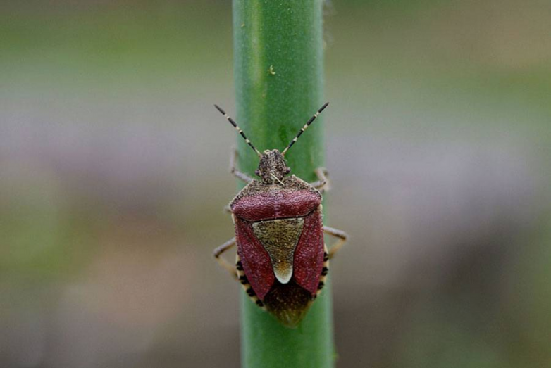 В детстве мы незатейливо называли этих ребят клопами-вонючками, а официально они именуются щитниками — из-за характерной брони, прикрывающей тушку. Семейство клопов-щитников известно еще с кайнозоя. Сейчас оно просто огромное: насчитывает почти 5000 видов, причем в Европе тусует только 228, включая несколько вредителей сельского хозяйства. Ягодного клопа тоже к ним относят, хотя он не сильно много бедокурит. Скорее, мелко пакостит.