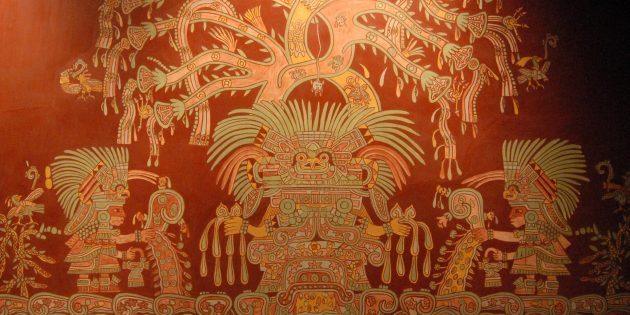 Репродукция фрески богини Теотиуакана в Национальном музее антропологии Мехико