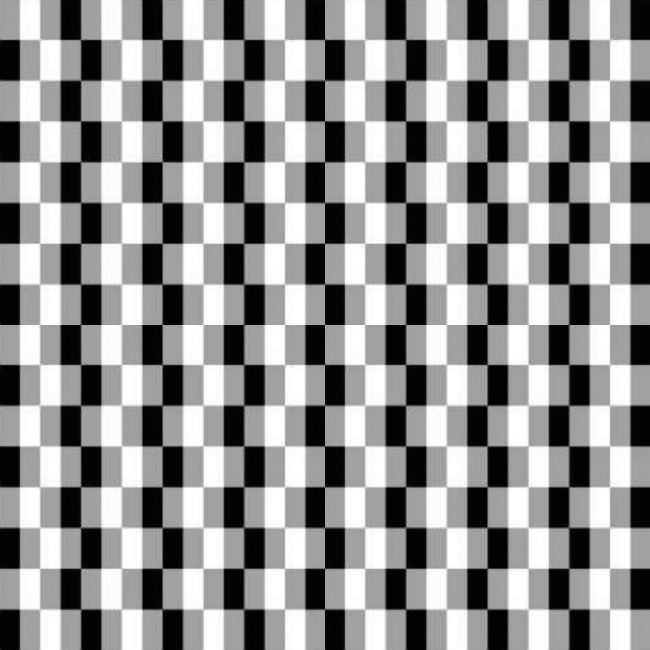 Видите шахматную доску с черными и белыми клетками? Серые половины черных и белых клеток — одного оттенка. Серый цвет воспринимается то как черный, то как белый.