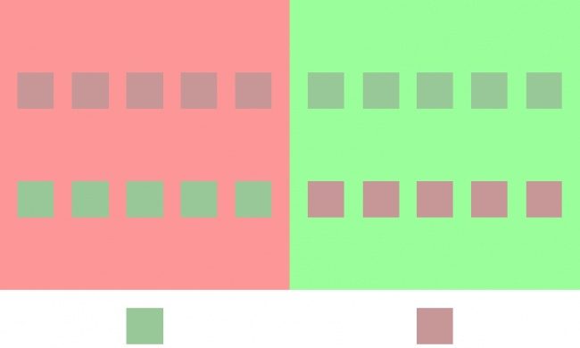 Сколько здесь цветовых оттенков, если не считать белый? 3? 4? На самом деле всего два — розовый и зеленый.