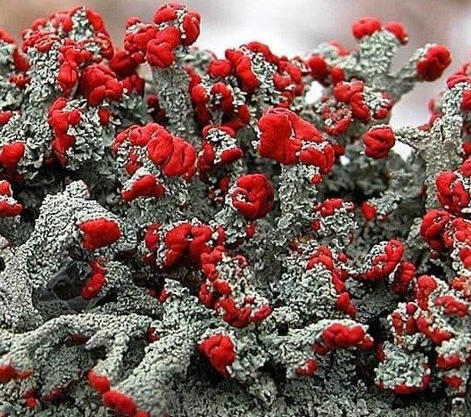 Все лишайники представляют собой колонии существующих в симбиозе грибов и водорослей, а также цианобактерий