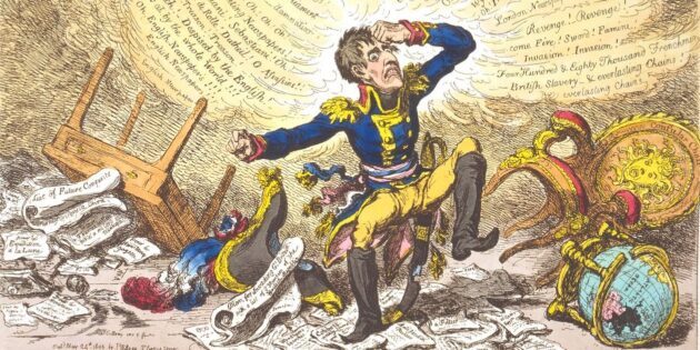 Императора и правда изображали коротышкой на британских карикатурах. И миф о том, что Бонапарт — злобный истеричный карлик, скорее всего, появился благодаря английскому художнику Джеймсу Гилрею, который рисовал врага Англии в этом неприятном образе. Впрочем, он и родного короля Георга III не щадил.