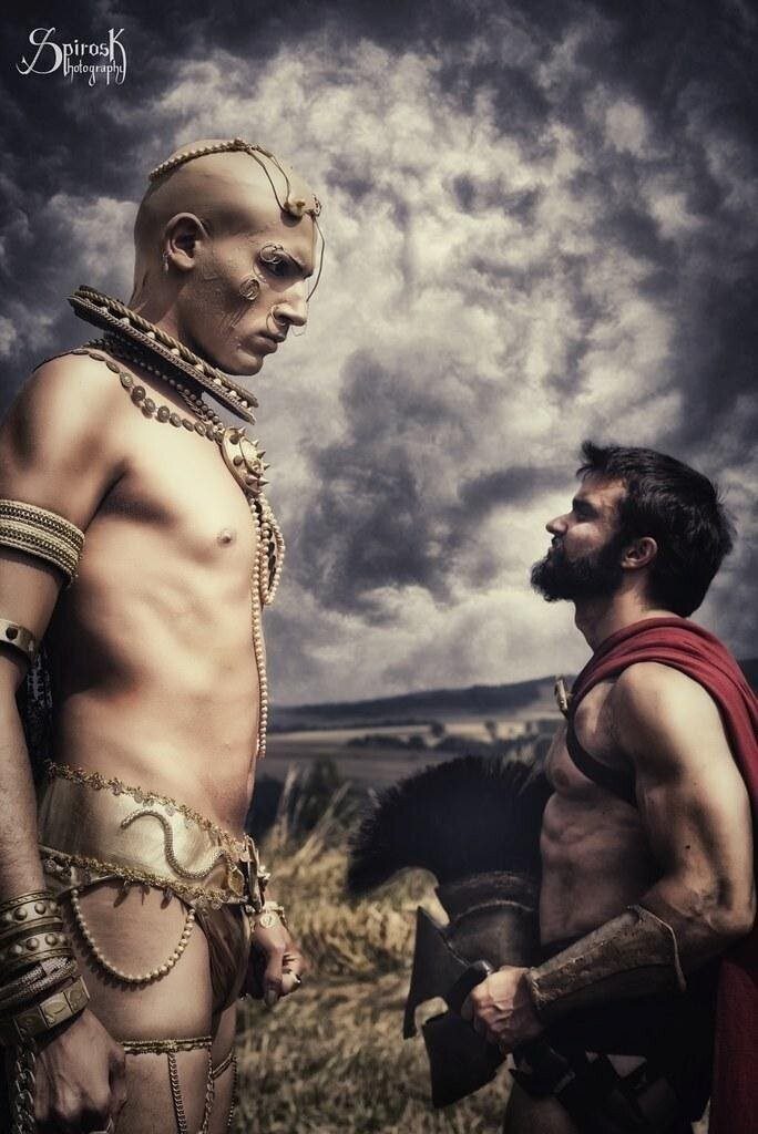 Ксеркс и царь Леонид. Постер фильма «300 спартанцев», 2007 г.