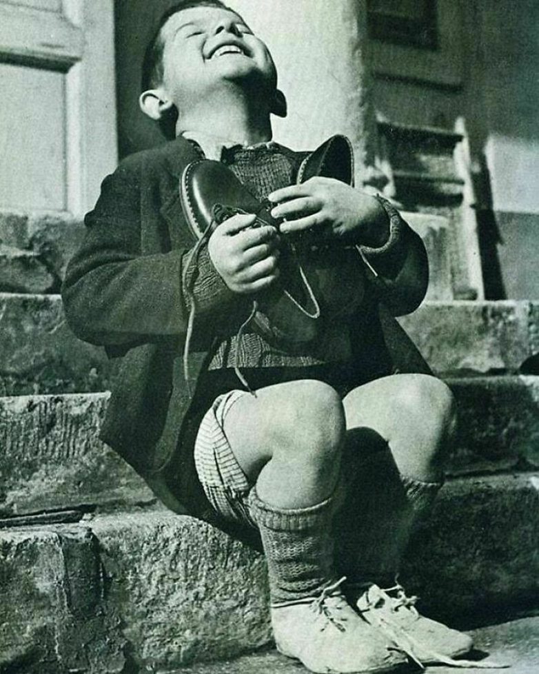 Маленький австриец радуется новым ботинкам, первая половина 1940-х годов
