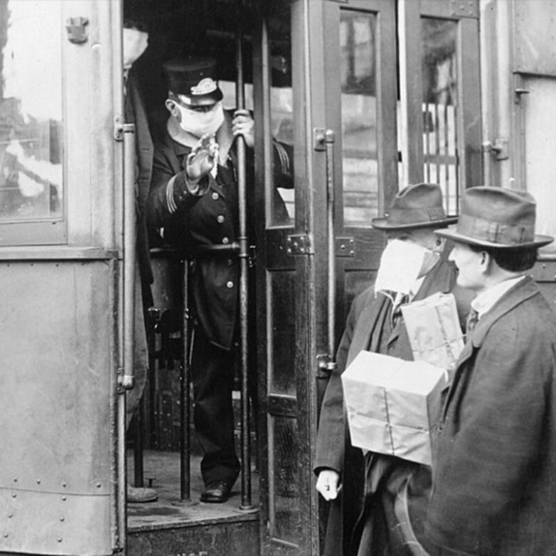 Кондуктор не пустил в трамвай пассажира без маски во время пандемии испанки, Сиэтл, 1918