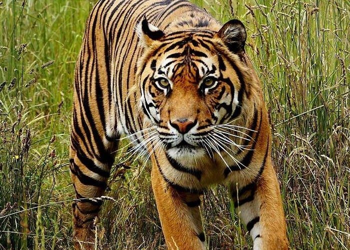 Тигры почти невидимы для некоторой добычи, ведь многие животные не различают оранжевый цвет — он видится им зеленым