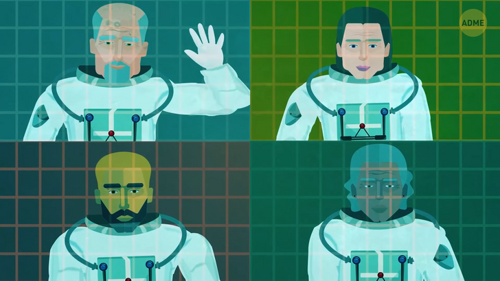 После видеозвонка вы прогуливаетесь по своему комплексу и узнаете, что в соседних с вами бункерах тоже живут люди. То же касается и ваших коллег на других планетах. Тысячу лет спустя вы уже забыли, как выглядит Земля. Вы не помните, каково чувствовать атмосферу или ветер, ласкающий кожу. Но вам удалось сделать бункер уютным благодаря множеству растений и клонированным земным животным в биокамерах. Сейчас вы совершенно не помните о миссии. И тут вам приходит уведомление о видеозвонке: пора проинформировать друг друга о ходе работы. Вы подключаетесь и ждете остальных. Уже минуту никто не отвечает. Вы не виделись с момента последнего видеозвонка тысячу лет. Но потом, один за другим, все подключаются к видеоконференции. Благодаря химическим веществам для продления жизни ваши тела не подвергаются сильным изменениям. Вы не стареете так же быстро, как на Земле. Вещества замедляют процесс на более чем тысячу лет.