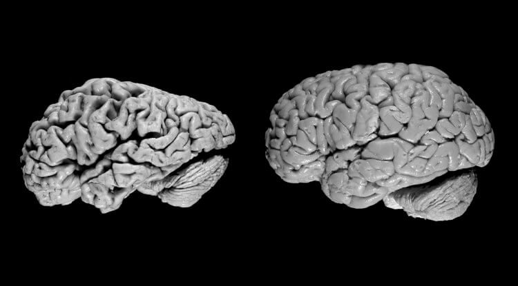 Мозг человека с деменцией (слева) и здорового человека (справа)