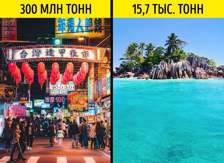 Лидеры по количеству твердого мусора в год — Китай (300 млн тонн), США (228,6 млн тонн) и Индия (226,6 млн тонн). Также в двадцатку самых грязных стран, но с отрывом примерно в 6 раз, входят Германия, Россия, Япония, Франция, Великобритания, Италия, Канада и др. Меньше всего твердых бытовых отходов — на Сейшельских островах (15,7 тыс. тонн в год), Сан-Томе и Принсипи (16 тыс. тонн), Гибралтаре (18 тыс. тонн). Среди 20 максимально чистых стран в основном именно островные государства.
