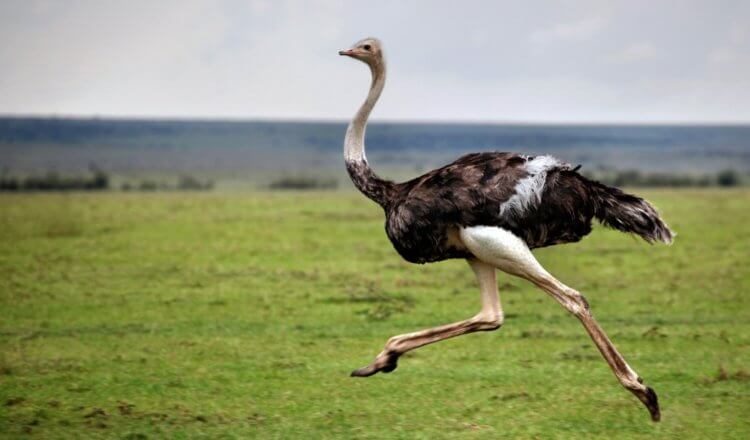 Современные страусы являются одними из самых быстрых животных на Земле. Эти нелетающие птицы, рост которых может достигать 2,8 метров, способны разгоняться до 70 километров в час. В большей степени их умение сильно разгоняться при беге связана с тем, что у них очень длинные и мускулистые ноги. Длина шага страусов может составлять 3-5 метров, поэтому они и могут преодолевать большие расстояния за короткий промежуток времени.