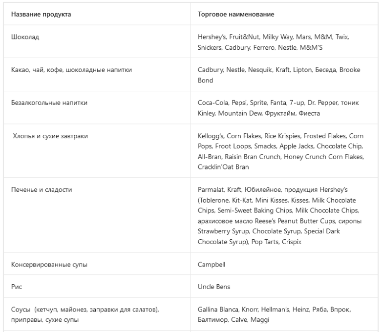 Однако если вы все-таки хотите знать, что именно употребляете в пищу, то ниже представлен список производителей, которые используют в составе своих продуктов ГМО и их торговые наименования.