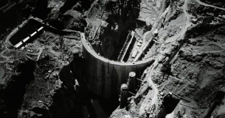 На снимке: Строящаяся плотина Гувера (известна также как Боулдер-Дэм), около 1933 года.