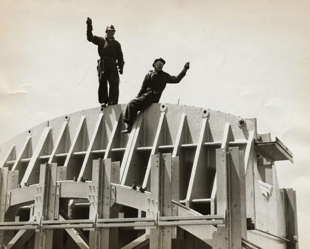 На снимке: Строители празднуют завершение важного этапа работ на Эмпайр-стейт-билдинг, около 1930 г.