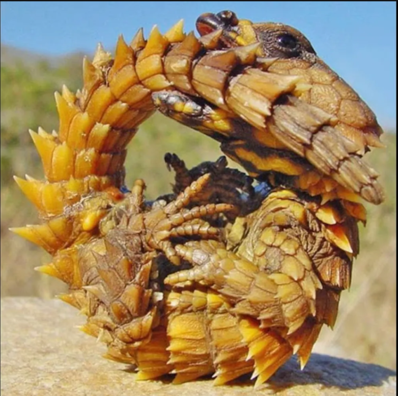 Ящерица-броненосец или малый поясохвост прославился эффектной защитной позой: свернувшись кольцом, закусив кончик хвоста и ощетинившись крупными шиповидными чешуйками. Но примечателен эндемик юга Африки еще и тем, что относится к немногочисленным живородящим пресмыкающимся.