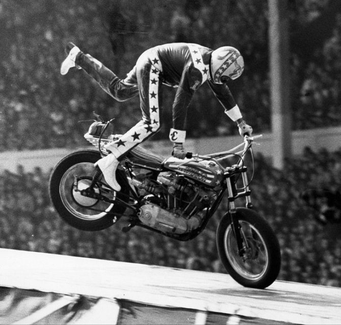Сложно сказать, везучим или невезучим был американский каскадёр Ивел Книвел. За свою жизнь он совершил множество трюков на мотоцикле, но при этом он сломал 37 различных костей в своём теле и в общей сложности провёл три года своей жизни в больницах. Однако, несмотря на это, ему удалось дожить аж до 69 лет!