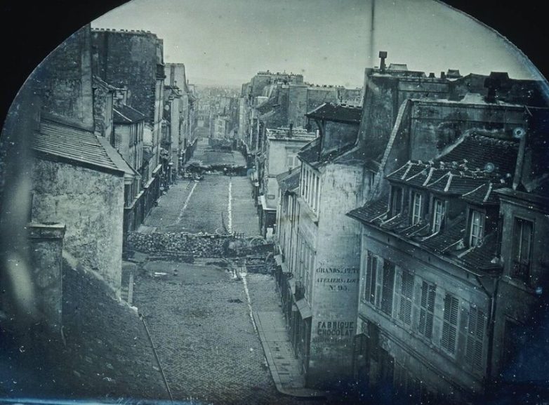17. Фотография баррикад на улицах Парижа во время революции во Франции 1848 года