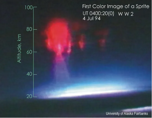 Первый цветной снимок красного спрайта, сделанный в 1994 году