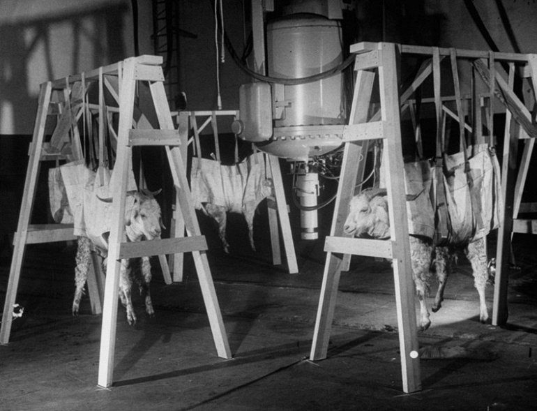 Овцы, пережившие испытание атомной бомбы, изучаются на предмет воздействия радиации, 1949 год: